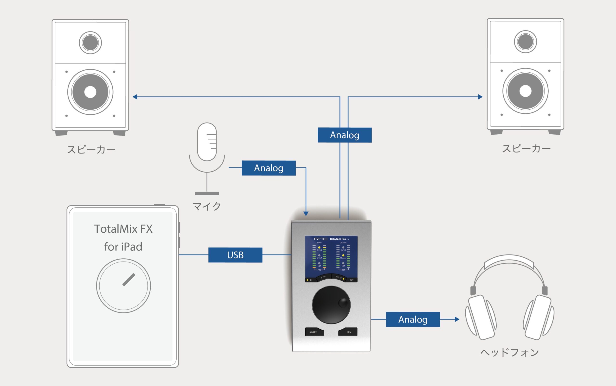 ※TotalMix FX for iPadを利用する場合は、TotalMix FX上で自由にルーティングを組むことができます。