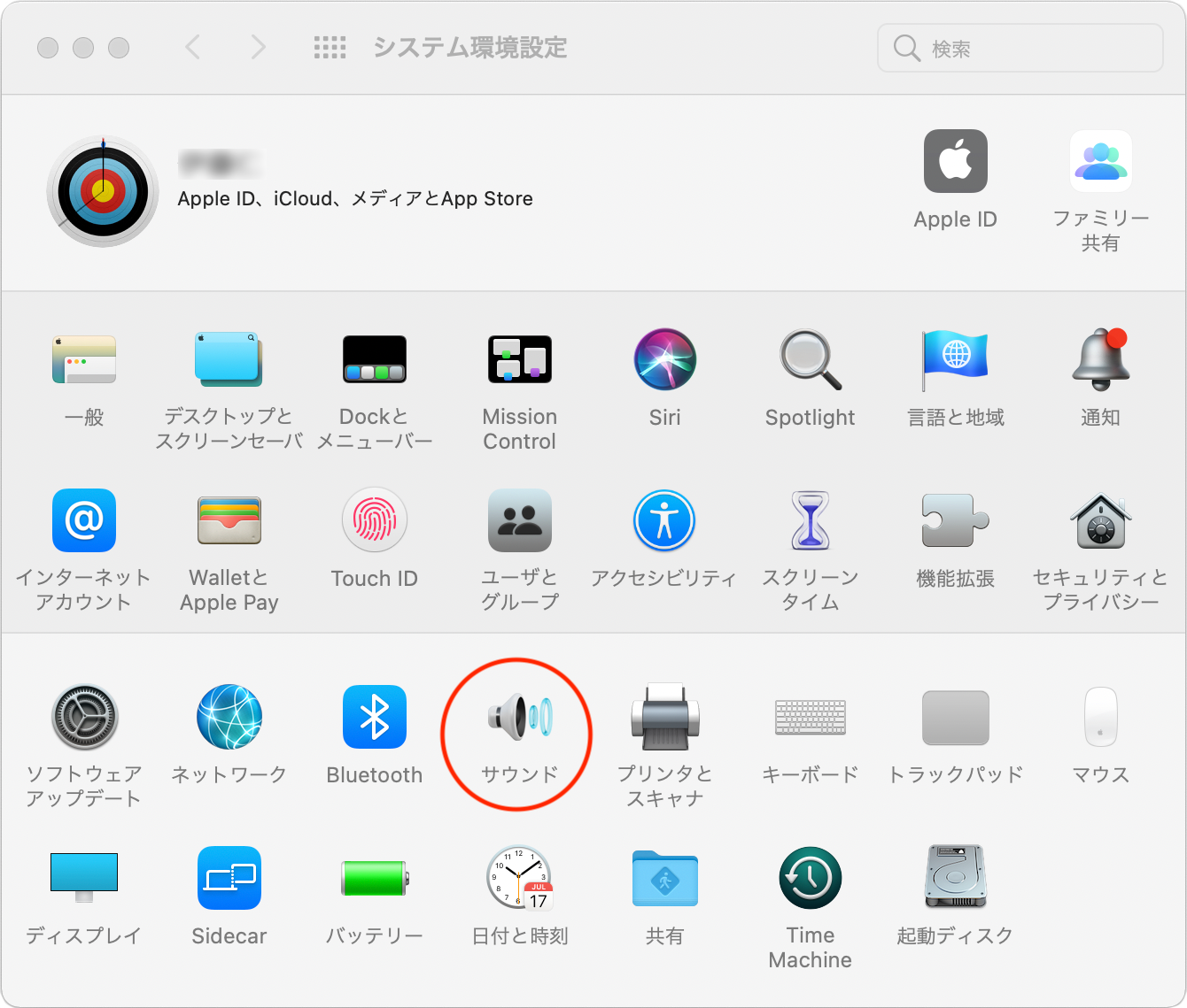 2.表示される画面内の「サウンド」アイコンをクリックします。