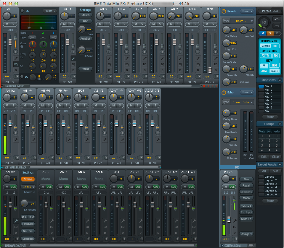 (下図では「Fireface UCX 1」。Windowsの場合はインターフェイスの入力チャンネル名が表示されます)。