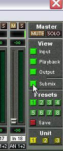 「Submix」ボタンをクリックして、サブミックスビュー・モードを有効にします(Submixボタンが緑に点灯)。