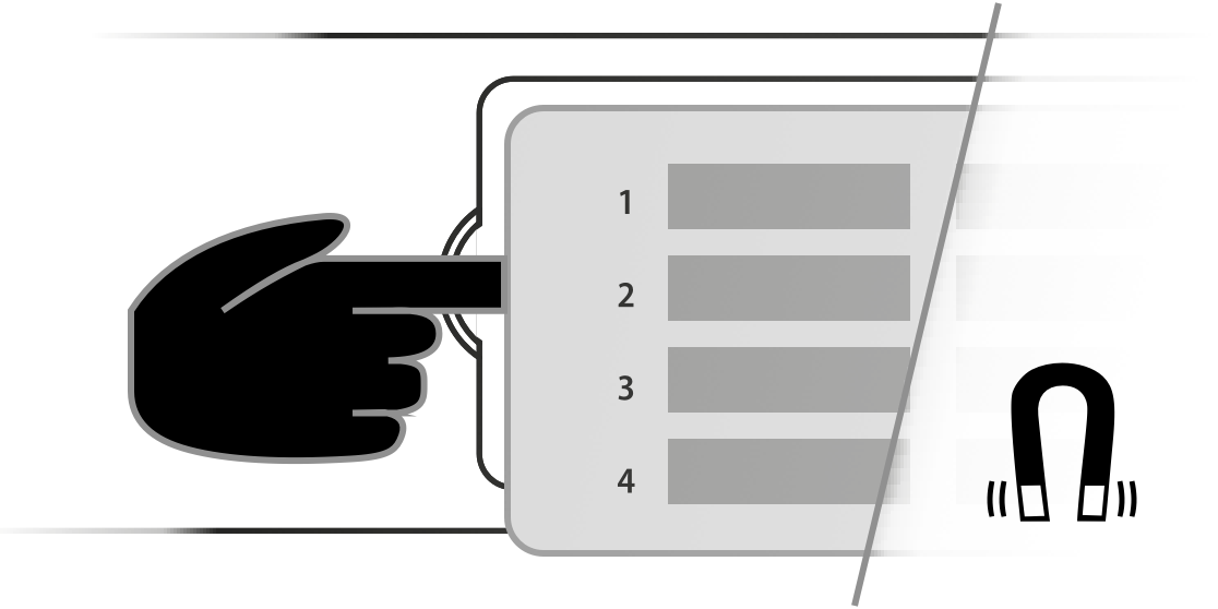 - 中央の磁石にシートの穴を合わせて位置を調整し、カバーをゆっくりと元に戻します。磁石に合わせて カバーを戻し指を離します。