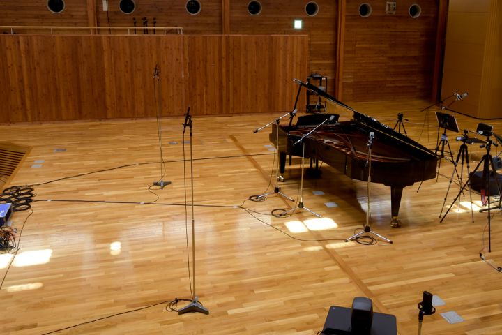 録音会場は八ヶ岳やまびこホール。晴れれば2階からは3方に富士山、八ヶ岳、南アルプスが見える美しい景色に囲まれたロケーションで、過去にRME Premium Recordingsの収録が行われた三鷹市芸術文化センター 風のホールと同じ設計者によるホール。暖かい残響が印象的です。