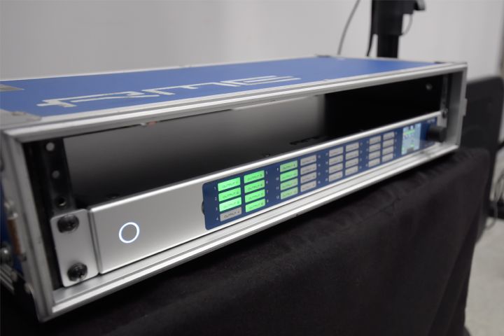 本システムでは、一般的な商業施設でも同じ試みが可能かどうかを検証するため、マルチチャンネル・オーディオを一般のLAN回線で送受信が行えるAVBを使って伝送しています。コントロール・ルームでミックスされたオーディオは、イマーシブ再生ルームのRMEのAVB – アナログ・コンバーター「M-32 DA Pro」に送られ、DAコンバートした信号がGelenecスピーカーで再生されました。