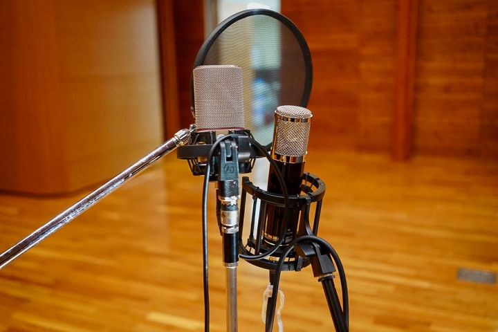 ご覧のように、ホール録音では演者がお互いの顔を確認する必要があるため、三角になるように演者が配置されました。またスタジオ録音と違い、ホールの響を聴きながらそれにあ合わせて演奏するのでモニターにヘッドフォンは使用せずに、フォールドバック(FB)スピーカーとしてGenelec 8020DPMが2台設置されました。マイキングとポジショニングは、スピーカー音を如何に拾わないようにするかが工夫され、演者の配置、最適なマイク選び、ポジショニングが考えられています。