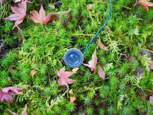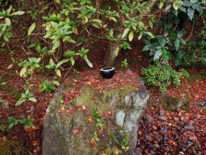 開催期間の終盤にあたる11月29日は、すでに京都らしい肌寒さを感じさせるものの、風のない穏やかな日だった。知恩院に着くと早速、「yadorine/宿り音」の舞台である「友禅苑」を訪ねる。彫刻家・高村光雲による観音菩薩像がそびえ立つ普陀落(ふだらく)の池を抜け、禹門(うもん)をくぐった先には、東山の自然に連なっているかと思わせるような、風情豊かな木々が生い茂っている。その合間にひっそりと、手前に華麓庵(かろくあん)、奥に白寿庵(はくじゅあん)という趣のある茶室が設えてあるが、今回のサウンド・インスタレーションは、この二つの庵の付近一帯で展開されている。そこでは及川さんが仕掛けた不思議なサウンドが静かに響きわたり、見事に風景の中に溶け込んでいた。